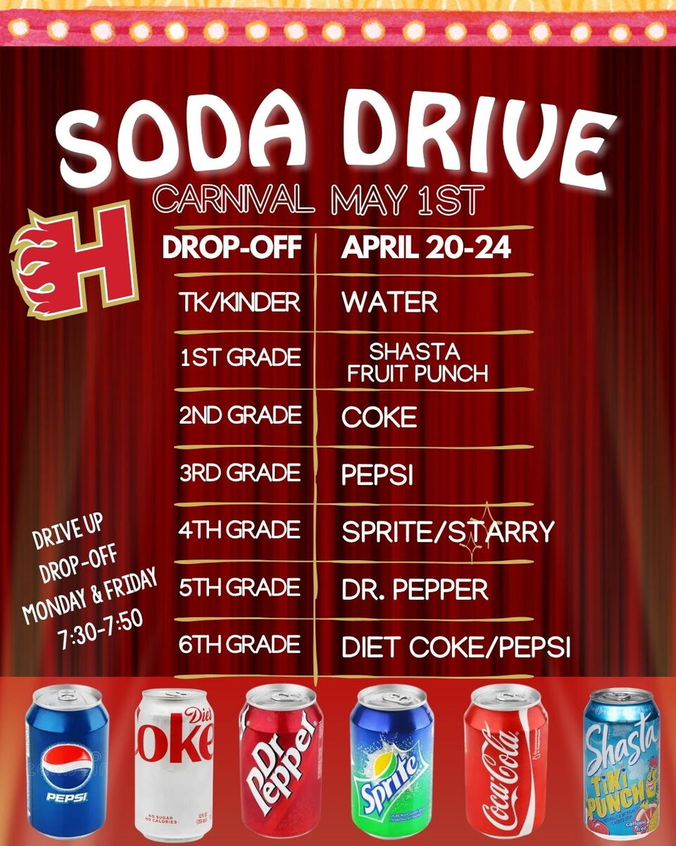 We’re gearing up for our upcoming school carnival and would love your support!Soda Drive Dates: April 20–24We are asking families to donate drinks to help support the carnival. Please check the fly...